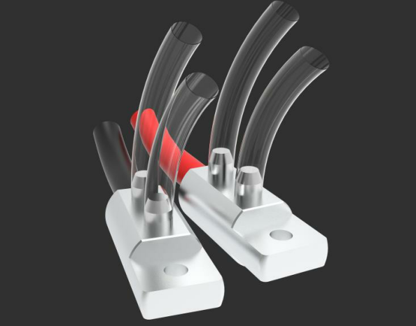 The DC+ and DC- electrodes in the figure above can form the coolant inlet and outlet circuits, and the electrodes are connected to the positive and negative electrodes of the charging pile power supply.The inlet and outlet pipes are connected with the liquid cooling source.